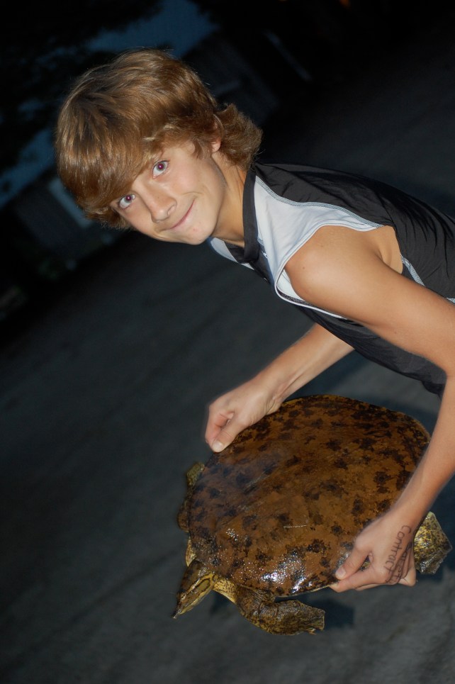 She probably wasn’t expecting it, then, when a stranger walked in and popped a bloody giant snapping turtle into her new sink.  Let me back up.  Her house is white with a front porch, so is mine.  They both have long driveways. Sometimes I don’t give really accurate directions… anyway, whatever the mix up was, I got a call for an injured turtle and wasn’t home.  If someone is kind enough to bring something with a boo boo to me, they’re probably not going to steal my 8-track technology level stereo, so I usually just tell them to go in and put whatever it is on the counter (in a box, gosh, I’m not a barbarian).  So, I might have been at dinner and might have had a wine or two.  The poor guy just got the wrong house.  Linnie wasn’t home and they gentleman just walked in and left the turtle.  When they got home from their dinner, they just continued through their lovely kitchen (with fabulous moss green marble countertops, I might add) and headed in to watch tv.  I’m sure they wondered, for a while, what the bumping noise was coming from the kitchen.  They have dogs so I’m guessing they assumed it was one of them.  I’m not sure what prompted their youngest daughter to go into the kitchen.  Could have been to get a glass of water.  Maybe a bowl of ice cream.  The scream that came through the doors and windows of that house, across the acres to me, though, was most likely heard through most southern states.  Knowing and loving their youngest, Kinz, I know the drama factor was biblical in proportions.  Their sink looked like a scene from Carrie.  So many turtles come to me after being hit on the road and it’s not pretty.  I happy that I was the only neighbor she knew yet and we’ve laughed many times over her “welcome to the hood” gift.  I’m thankful she turned out to be a cool girl, totally down with the entire thing and took my explanation, blinked once or twice, and just moved on.  I retrieved the turtle, worked on his shell, released him and all was well.  Linnie has been around for years now, through gazillions of animals, sucked into our oddball vortex and bringing her own version crazy to become exactly the neighbor I’ve always wanted.
