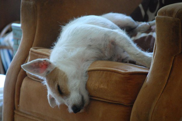The strangest problem, though, is the straw. The sight of a straw emerging from a drink will cause her to run like she’s being chased by Satan. If a straw is produced in the car, she will crawl as far into the 2” space under the seat as she can thrust her stiff and portly little body. She has spent a lot of time in the car with teenaged boys and I feel this is what’s sent her into full on doggy insanity. She takes to the bed like Scarlet O’Hara now at the slightest provocation, flopping down in mental exhaustion.